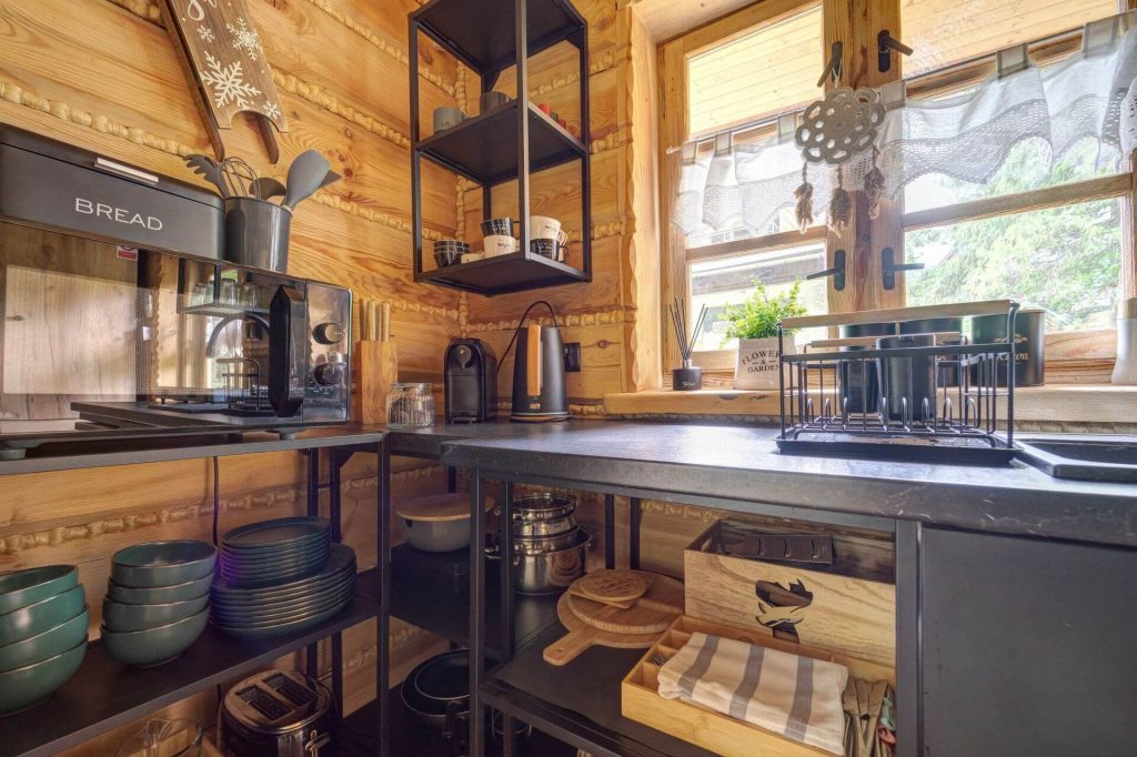 Nie zapewniamy wyżywienia, ale zostawiamy do Waszej dyspozycji kompletnie urządzony aneks kuchenny. Znajdziecie w nim wszystko, co jest potrzebne do przygotowania smakowitych śniadań, ulubionych obiadów i zdrowych przekąsek – garnki, patelnie, naczynia, zastawę i sztućce.